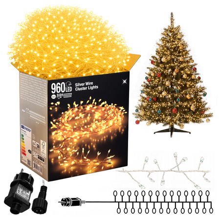 ➡️ Komplet Lampek choinkowych 960 LED 12,6 (9,6m+3m) - barwa ciepła - 3000K